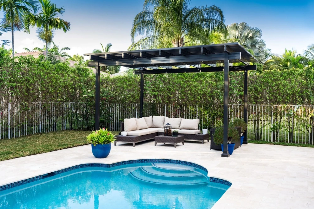 The Aria is one of the industry’s only fully extruded, fully structural pergola systems. Unlike thinner metal systems, the Aria is designed to last for the life of your home. Using our 2-inch-wide wide shade lattice tubes, the Aria can provide 10% to 60% shade, so you can choose how much sun you want to illuminate your space.Virtually any shape and size