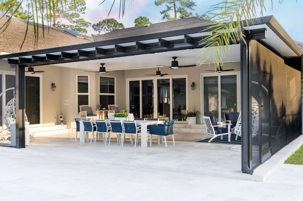 Baked-on powder coat finishes on all of our extruded aluminum profiles are the very best in durable and maintenance-free coatings that require no more maintenance than a wash now and then.Patio design with the dream in mind