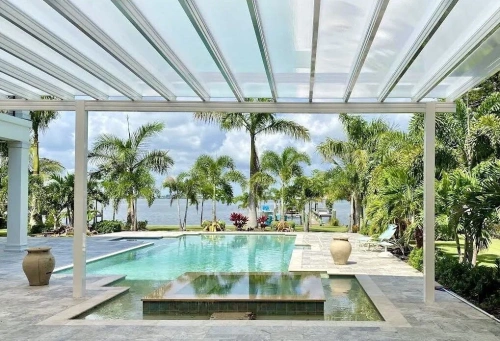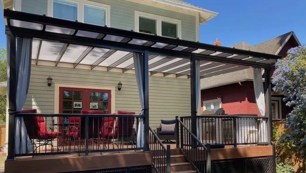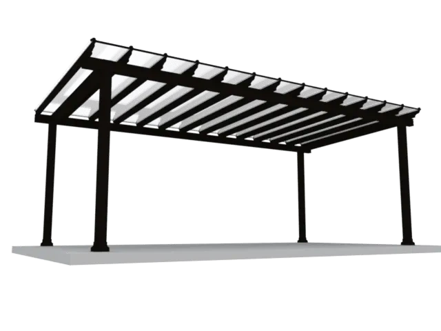Aircraft grade powder-coated extruded aluminum can stand the test of time while remaining beautiful and requiring little to no maintenance. High carbon steel and nylon headed fasteners withstand the worst nature can throw at them, and automotive grade nylon covers and caps create a smooth and complete appearance designed to live in the sun.Insulated polycarbonate roof panels
